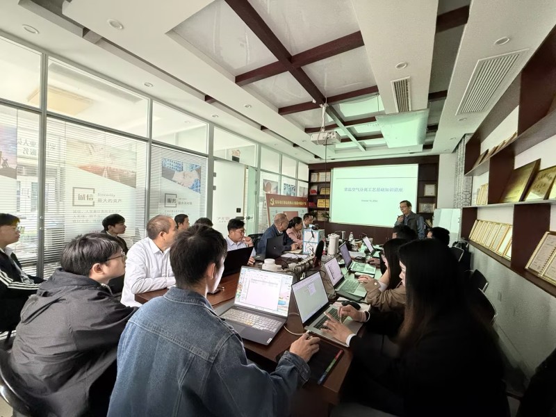 培訓(xùn)中,沈老師簡(jiǎn)要介紹了本次培訓(xùn)的目的,并結(jié)合氣體設(shè)備市場(chǎng),重點(diǎn)介紹了常溫空氣分離工藝基礎(chǔ)知識(shí)、常溫空氣分離(變壓吸附及膜)工藝及設(shè)備、碳分子篩及變壓吸附制氮技術(shù)、壓縮空氣膜干燥工藝及設(shè)備等知識(shí),通過(guò)深入淺出的現(xiàn)場(chǎng)講解和提問(wèn)方式,鼓勵(lì)學(xué)員們主動(dòng)思考、積極發(fā)言。