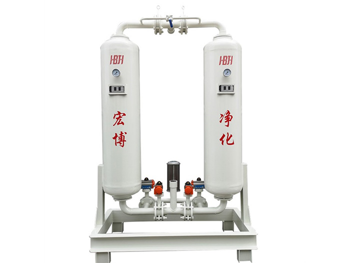 無熱吸附式干燥機(jī)是利用變壓吸附的原理,使干燥機(jī)在管網(wǎng)壓力下吸附,然后在切換到大氣壓下脫附,并從干燥機(jī)出口引回約12-14%的干燥成品氣對(duì)干燥劑進(jìn)一步凈化再生。雙塔交替進(jìn)行以上過程,向用氣點(diǎn)提供干燥的壓縮空氣。